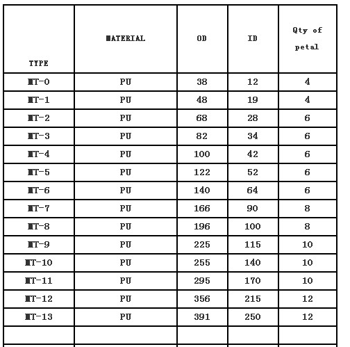 執行標準:GB/T 5272-85。型號范圍:MT1-MT13,硬度ShoreA95±2A。顏色:黃色/白色。產品均采用   聚氨酯材料生產,具有高、高回彈性、耐油耐水及優異的疲勞強度和抗沖擊性等優越性能,使得產品質量   優異!各種型號聚氨酯梅花墊如下:MT型梅花墊(MT1-MT13),GR型梅花墊(GR19-GR125)、GS型梅花墊(GS9-GS38),T型六角靠背輪墊(六角彈性墊),液力偶合器梅花墊(YOX),及各種非標梅花墊。泊頭市利群聯軸器有限公司廠家經營,